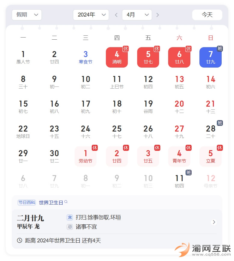 2024年清明節(jié)4月4日至6日放假調(diào)休,周日上班!