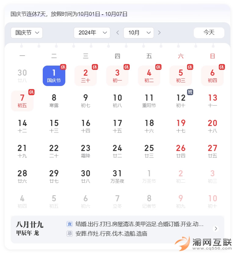2024年國慶放假安排:連休7天,調(diào)休2天